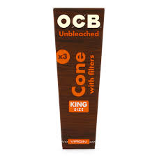 Made by the worlds largest and most experienced manufacturer of premium rolling paper, OCB Virgin cones combine OCBs legendary quality and consistency with superior burning properties and an eco-friendly natural attitude that matters to todays environmentally conscious consumers. Made from genuine Virgin paper sourced from sustainably managed forest resources and minimally processed to reduce environmental impact, OCB Virgin cones are unbleached / chlorine- and dye-free and are certified GMO-free and Organic / Vegan. Tipped with unbleached virgin filters, OCB Virgin Cones offer an unparalleled all-natural smoking experience and are available in your choice of 1 (84mm) or King Size (109mm).